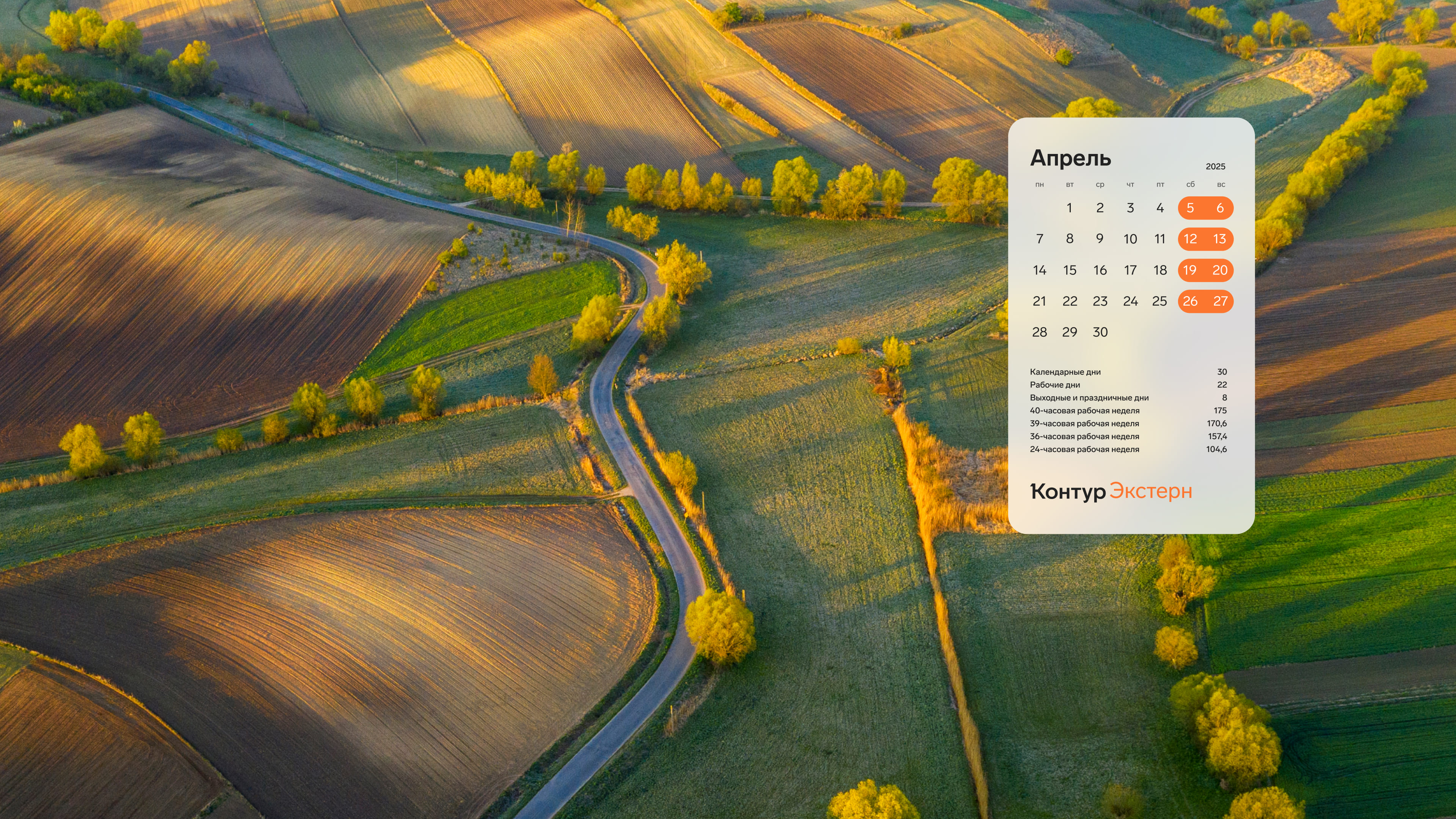 Апрель 2025. Календарь на рабочий стол. Оставьте комментарий / От pragmatik / 20.03.2025 22 рабочих дня.